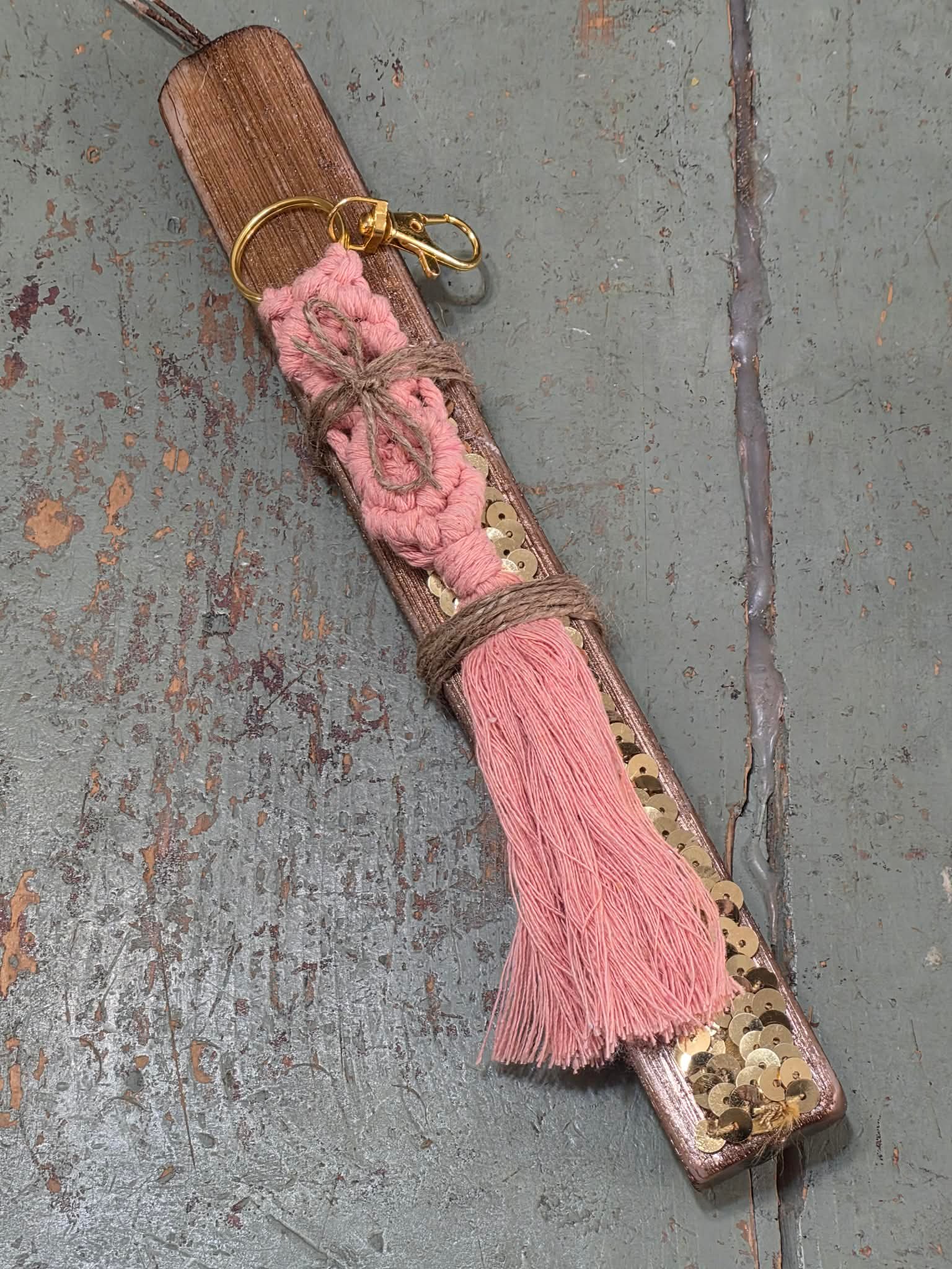 Καφέ γδαρτή λαμπάδα με μπρελόκ μακραμέ ποσότητα