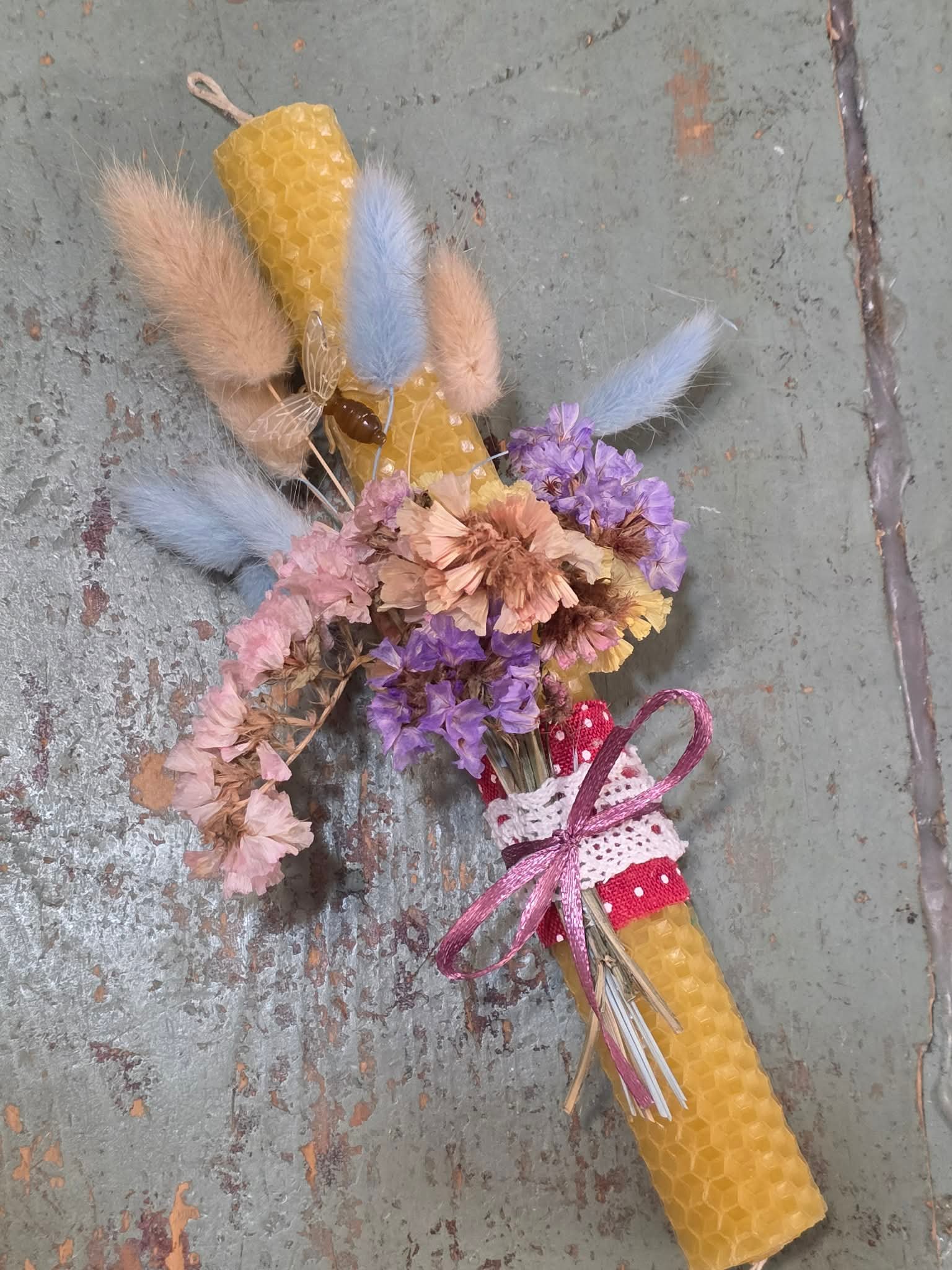 / Αρωματική λαμπάδα μελισσοκέρι με αποξηραμένα και δαντέλα