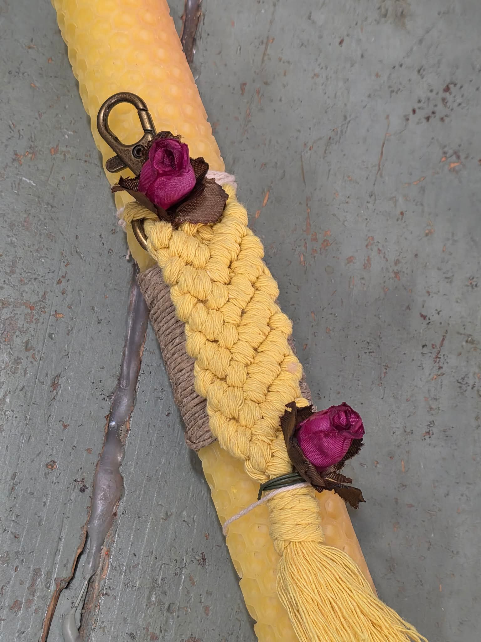 / Αρωματική λαμπάδα μελισσοκέρι με μακραμέ μπρελόκ