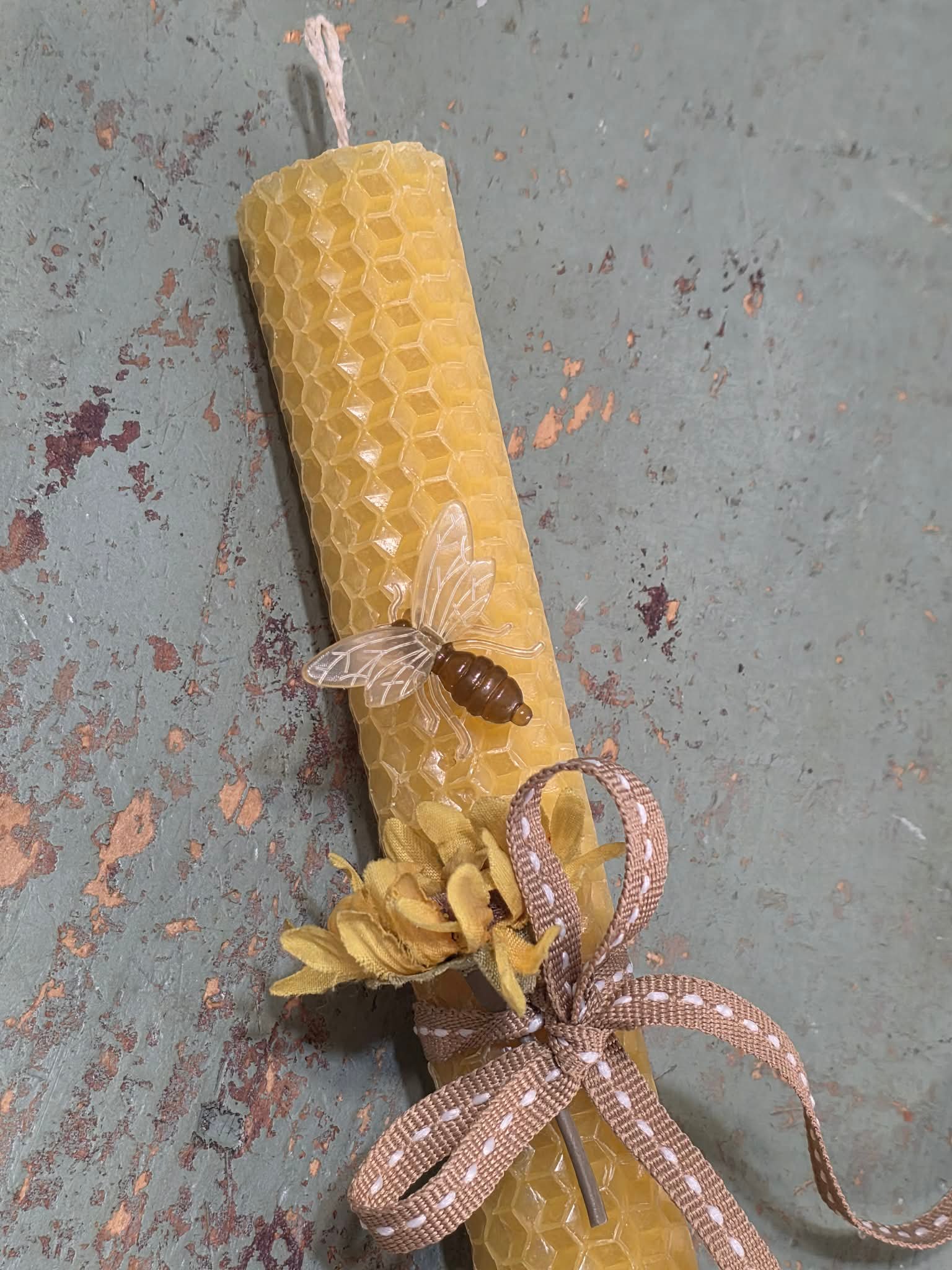 Αρωματική λαμπάδα μελισσοκέρι με μελισσάκι και λουλούδια ποσότητα