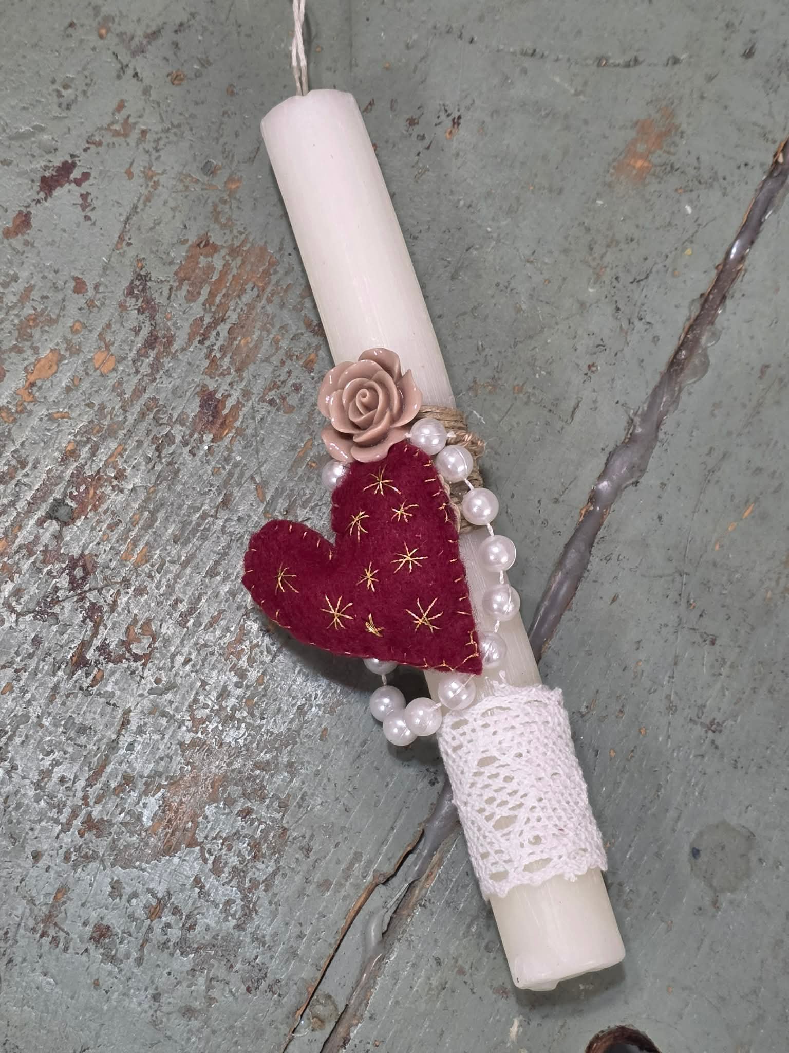 Αρωματική ρομαντική λαμπάδα “καρδιά και πέρλα”