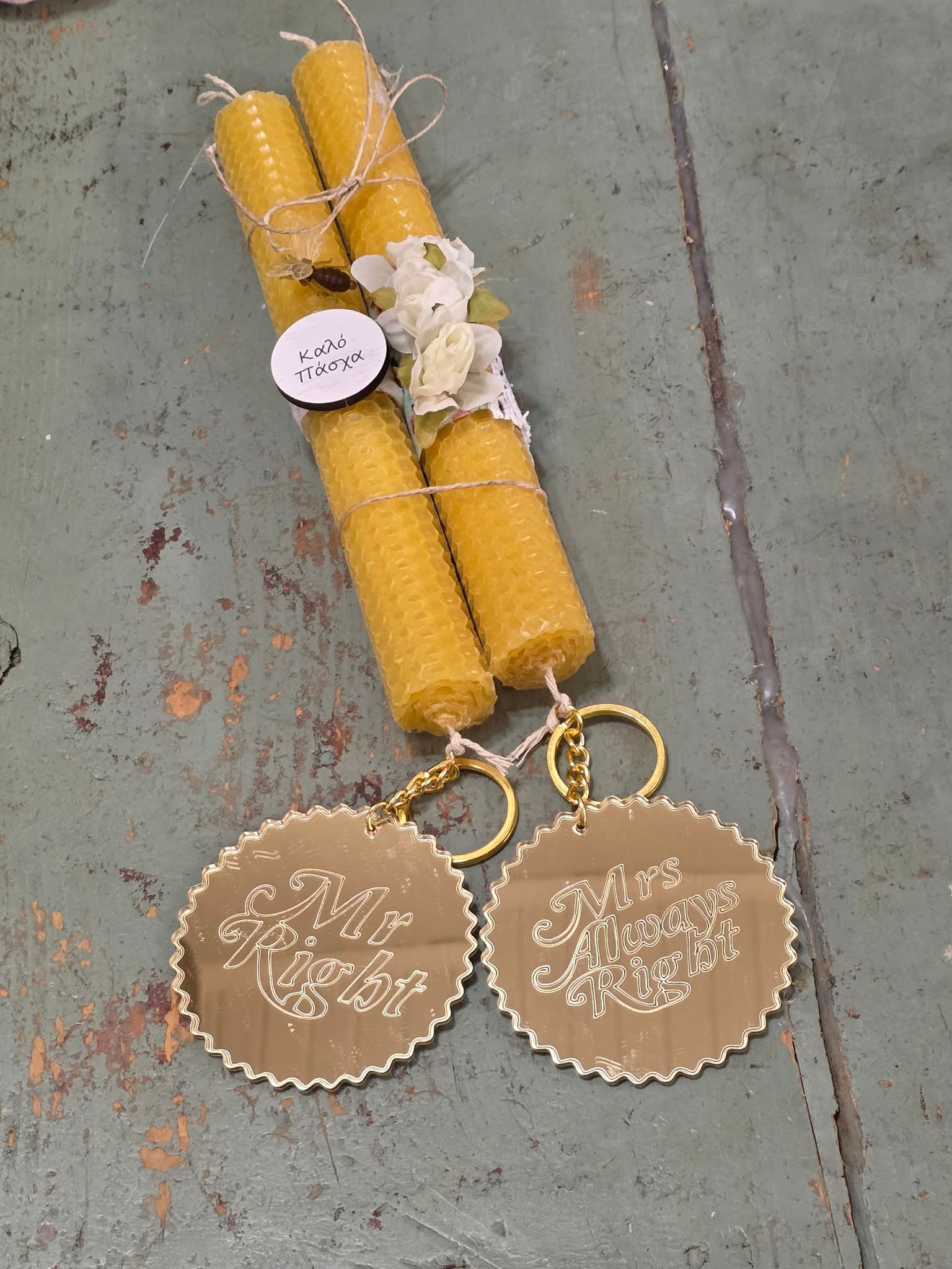 Διπλή λαμπάδα μελισσοκέρι για ζευγάρι ποσότητα