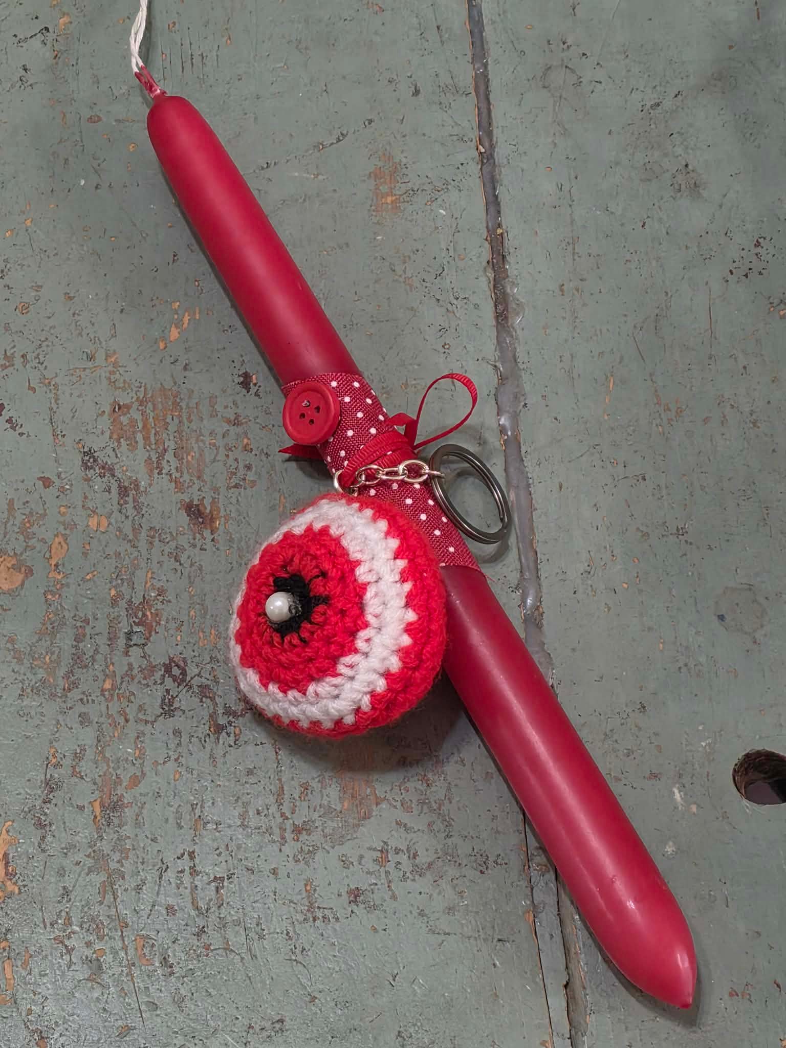 / Κόκκινη λαμπάδα με μπρελόκ “πλεκτό μάτι”