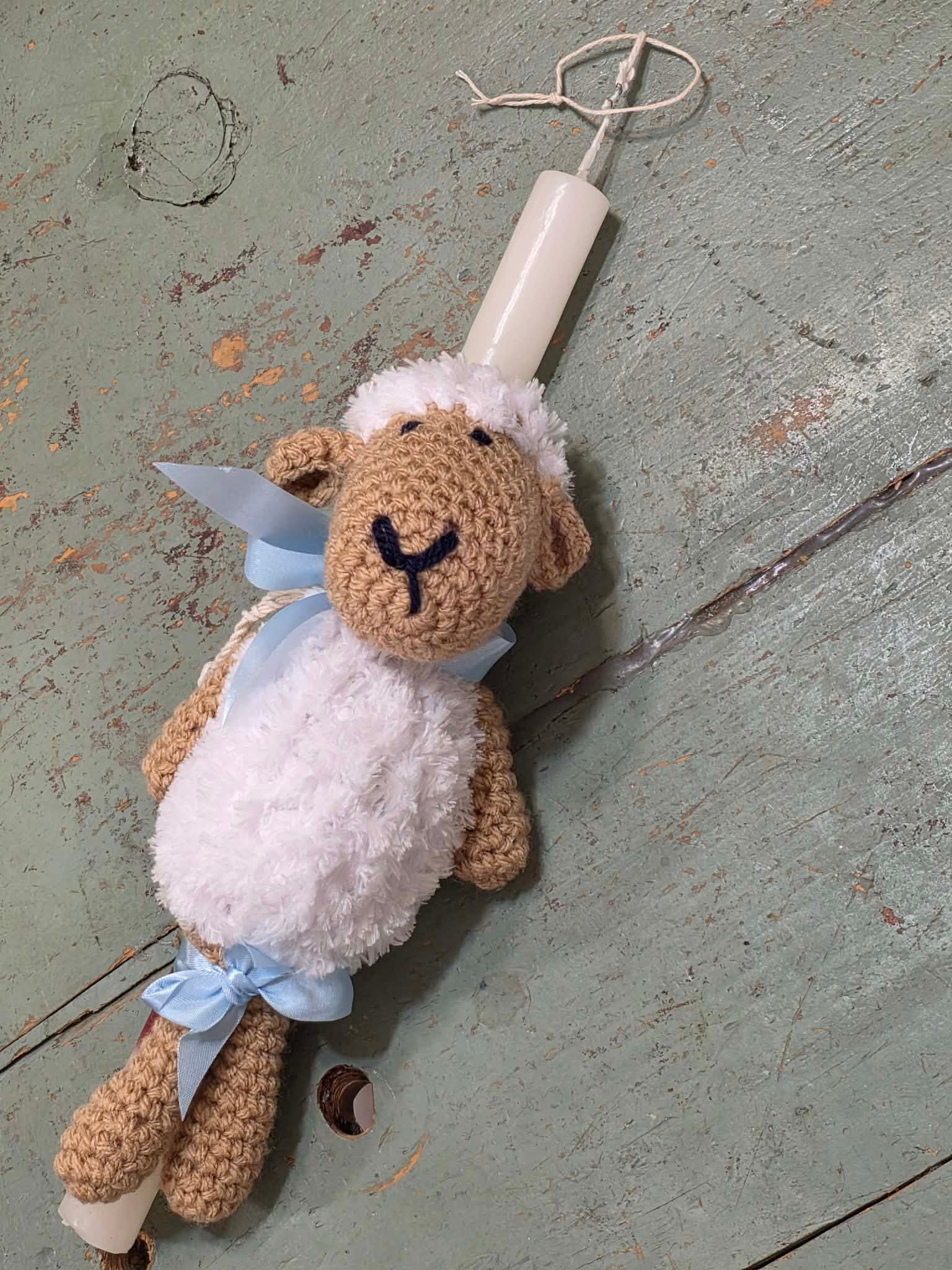 / Λαμπάδα με πλεκτό χειροποίητο αρνάκι