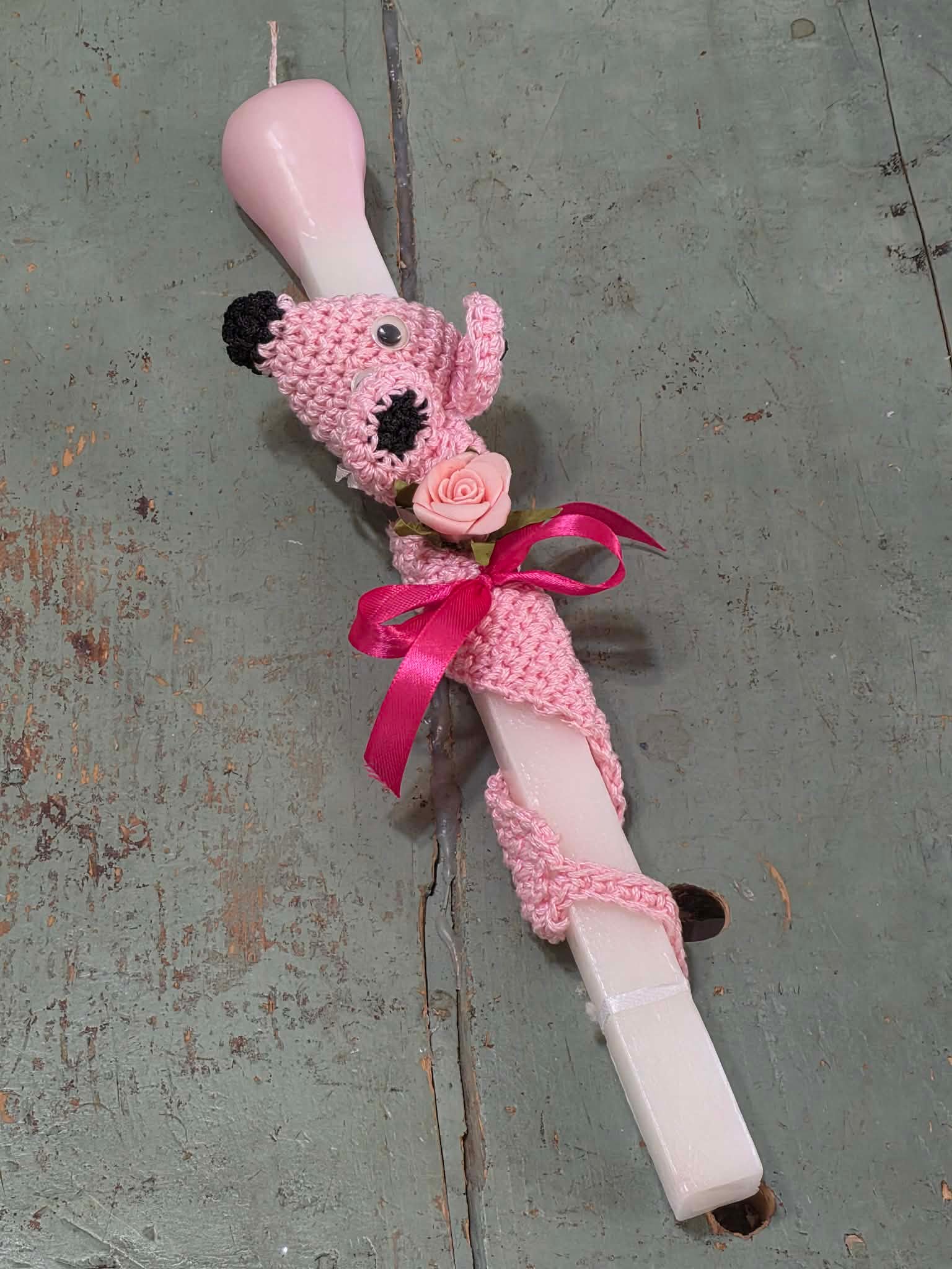 / Λαμπάδα σπίρτο με πλεκτό ροζ σελιδοδείκτη